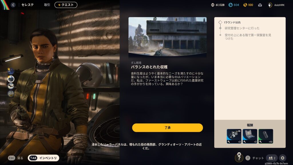 本記事ではARC Raiders(アークレイダース)のクエストである、「バランスの取れた収穫」について記載します。