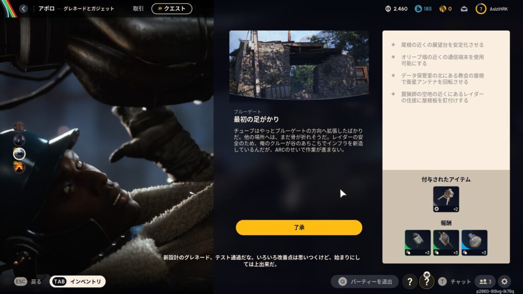 ARC Raidersのクエスト「最初の足がかり」の内容は以下のとおりです。