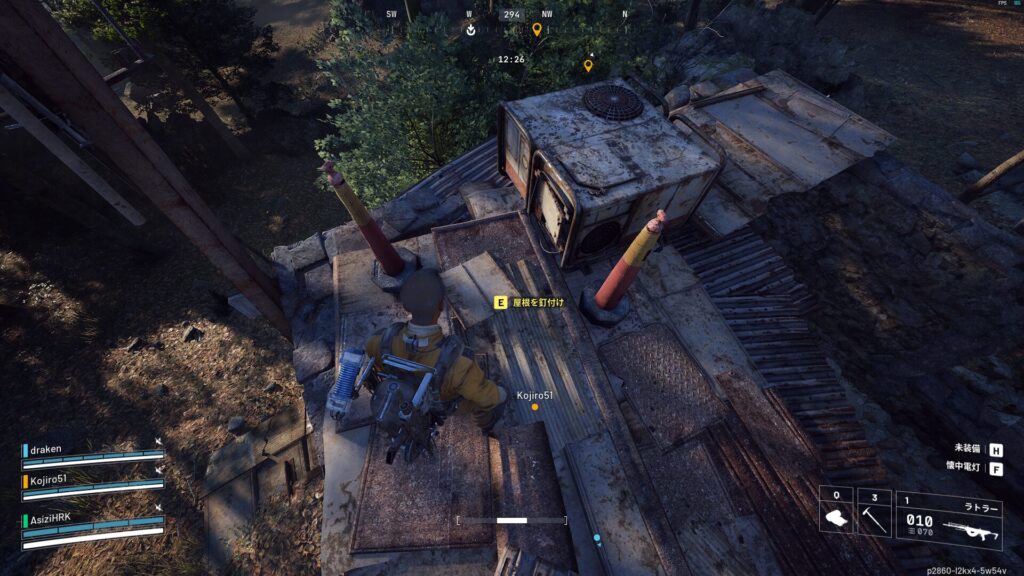 その建物の屋根に上ると、「屋根を釘付け」と表示されるのでアクションボタンを押します。