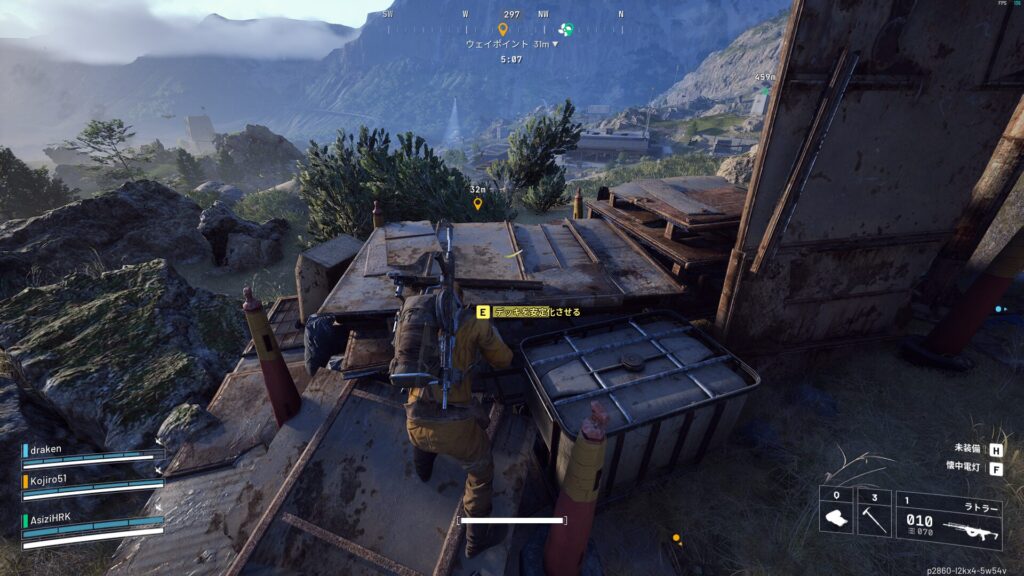 近づくと「デッキを安定化させる」と表示が出るのでインタラクトしてタスク完了です。