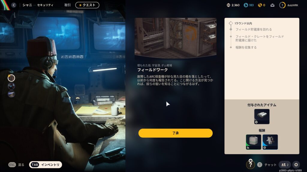 ARC Raidersのクエスト「フィールドワーク」の内容は以下のとおりです。