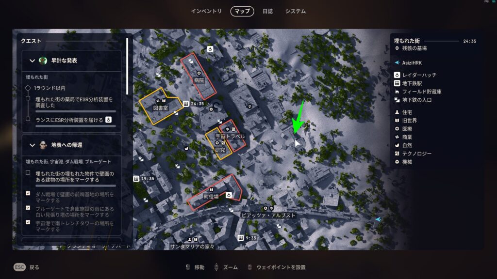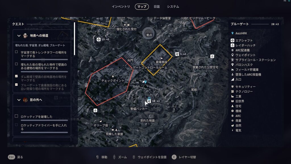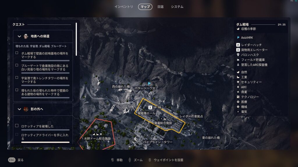 このクエストは埋もれた街・宇宙港・ダム戦場・ブルーゲートでそれぞれタスクを行う必要があります。