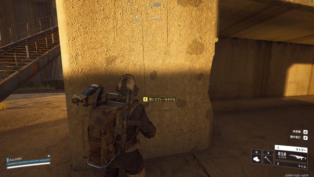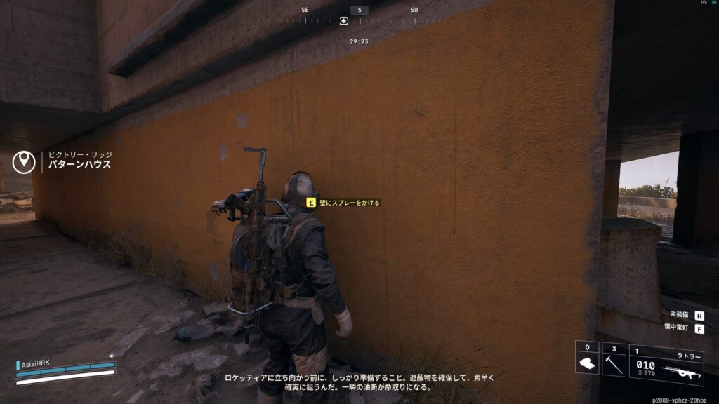 そして、パターンハウスの壁に近づくと「壁にスプレーをかける」という表示が出るのでアクションボタンを押します。