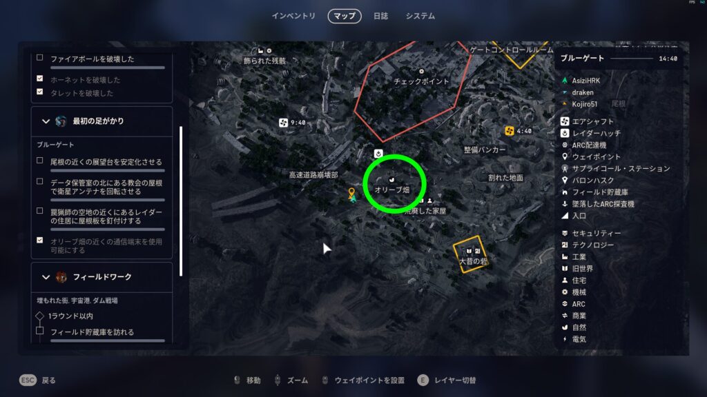 オリーブを収穫できるマップはブルーゲートだけです。