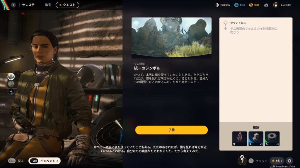 | タスクの内容 | 1ラウンド以内 ・ダム戦場のフォルミカイ前哨基地に向かう |
