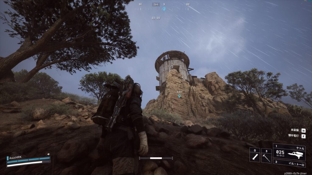 細い柱があるので、アクションボタンで旗を上げます。