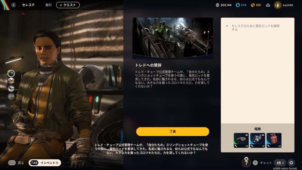 クエストは「トレーラー」メニューから「セレステ」を選択すると受注することが出来ます。