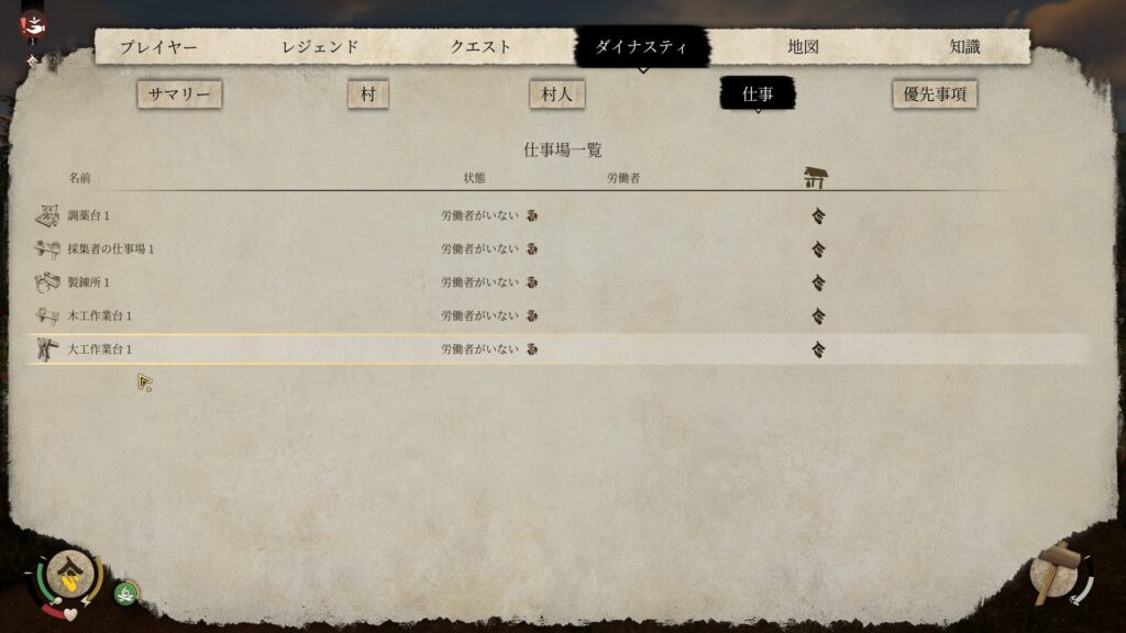 ダイナスティの仕事のところから大工作業台1を選択。