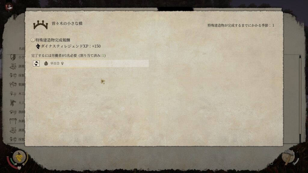 丸太を12と板を20入れて、労働者には小百合を割り当てた。