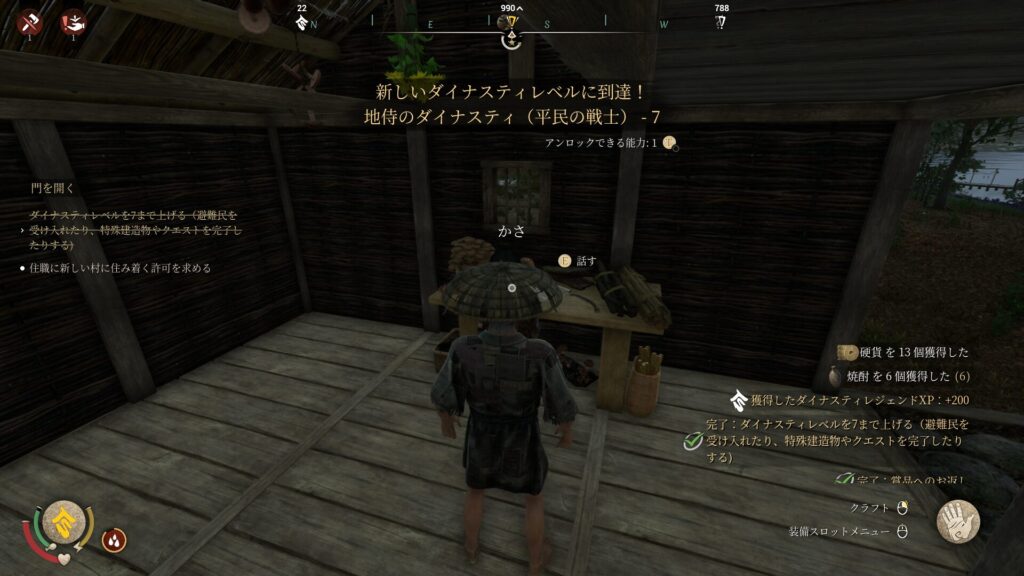 やぐらが解放されたけれど、クエストで解放されたのかダイナスティレベルが7になったから解放されたのかはよくわからなかった。