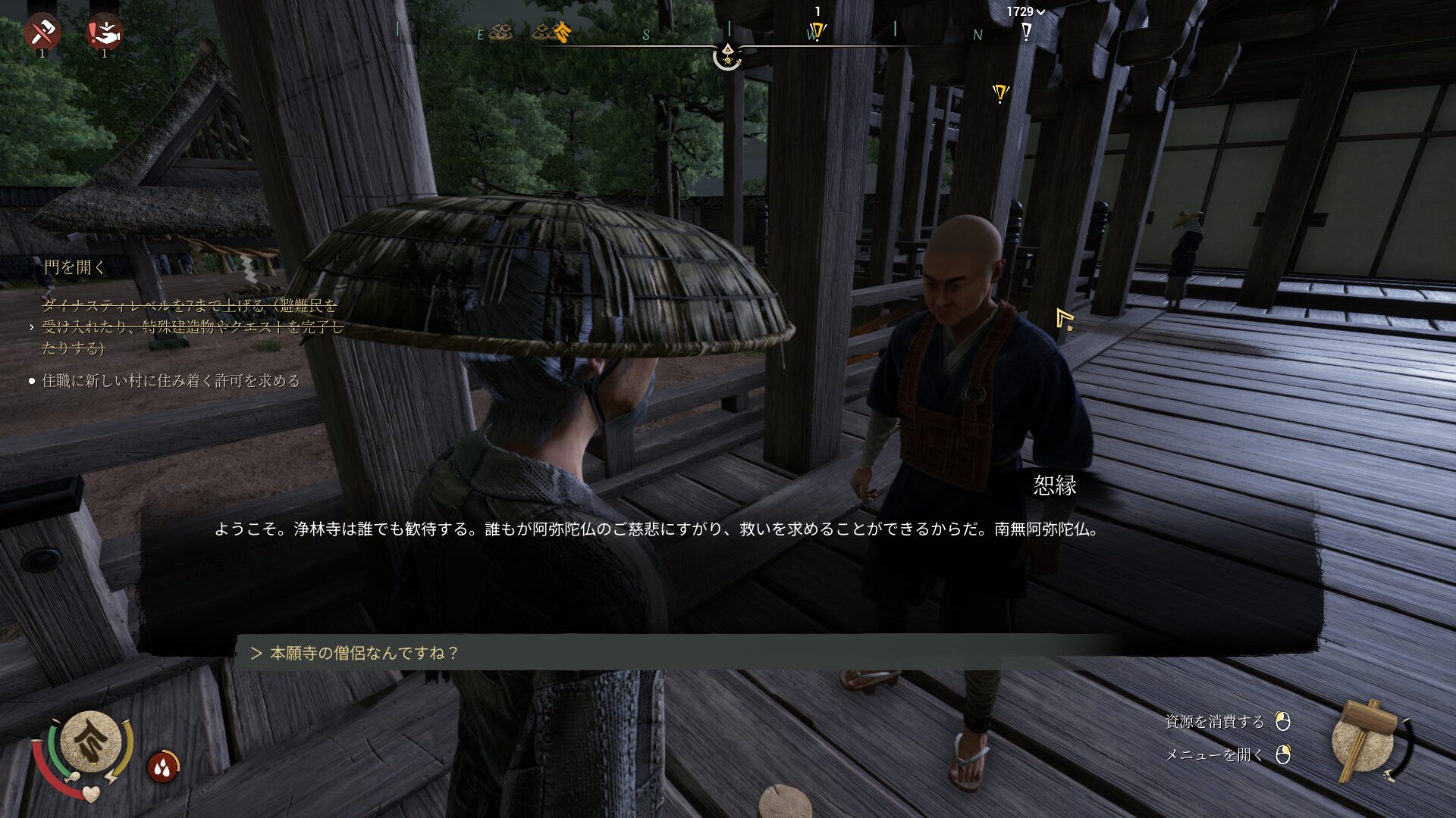 ダイナスティレベルが7になったので住職に許可をもらいに行く。